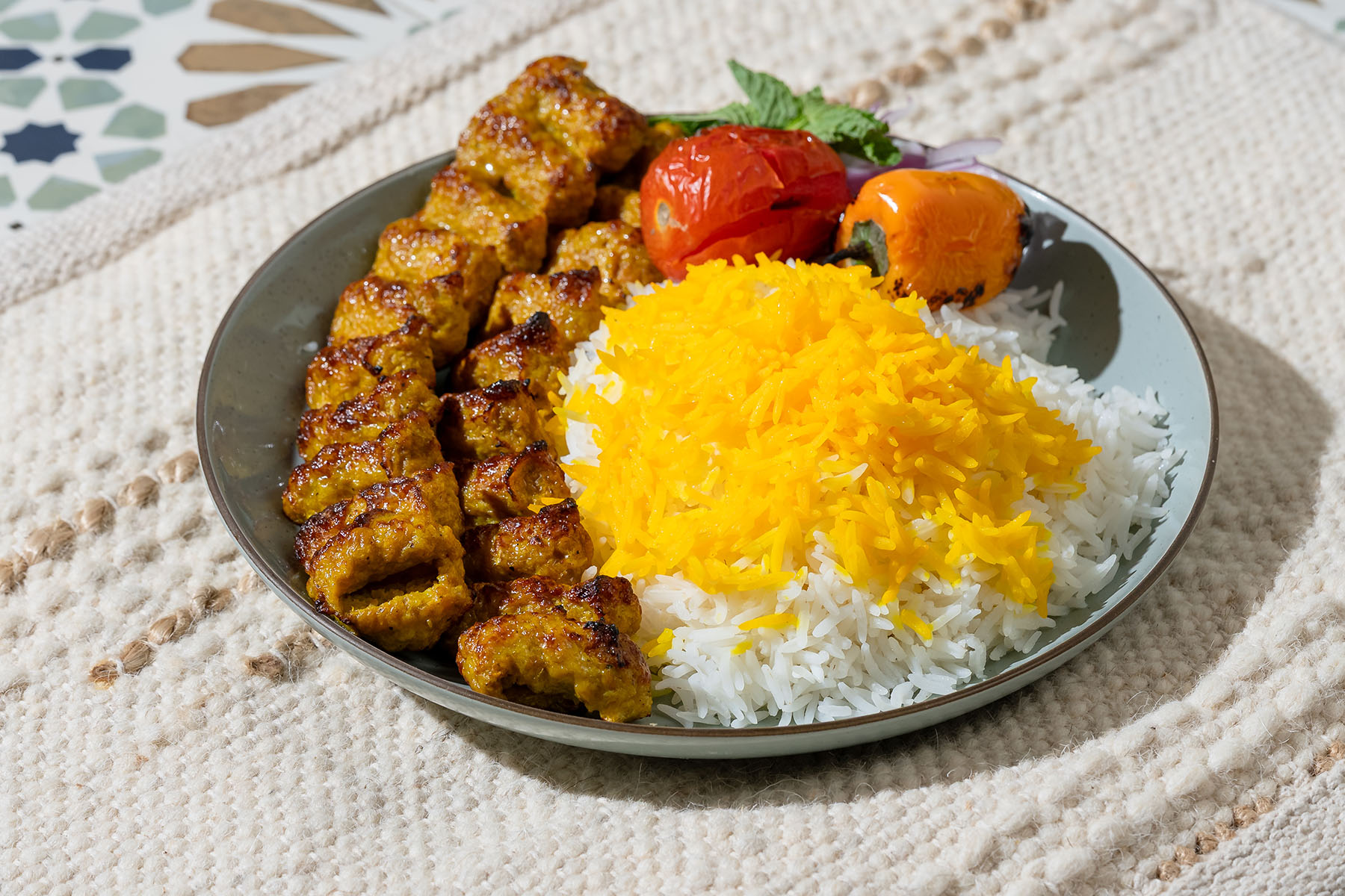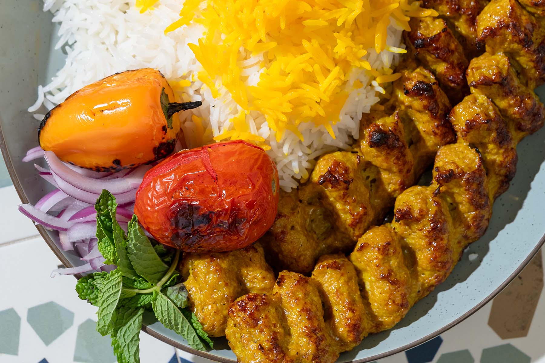 Persian street food, straight up. Parkway’s Chicken Kebab Koobideh is two skewers of ground chicken mixed with spice and onion, then charbroiled until the outside is slightly crispy and the inside stays juicy—no dry, bland nonsense here. Served with saffron rice, grilled tomato and bell pepper, plus fresh onion and mint, this is pure comfort and protein. You want flavor, you get flavor. Not your average kebab; this one actually delivers.