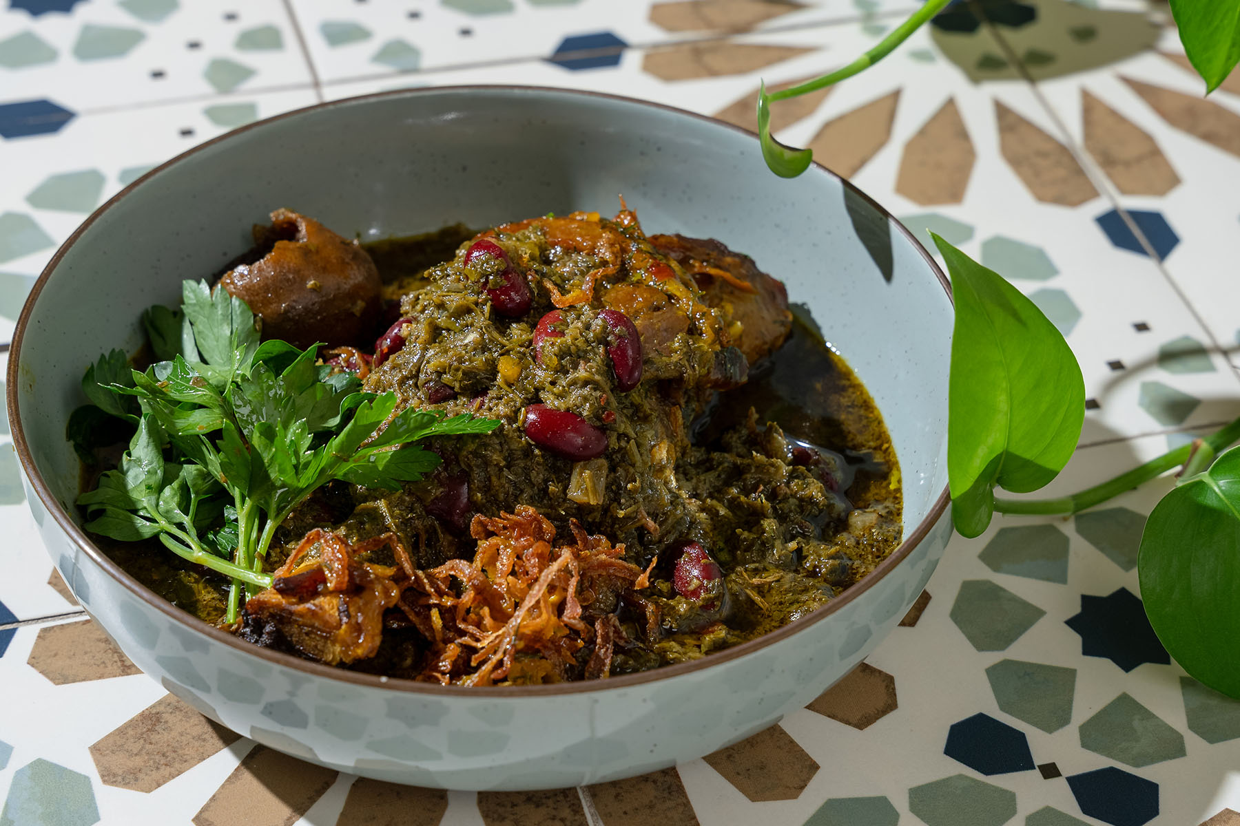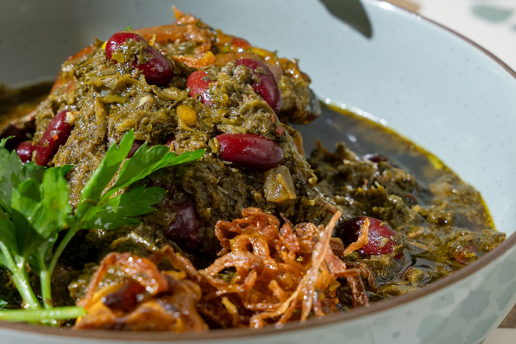 Persian classic, no compromise. Ghormeh Sabzi is a dense stew packed with lamb shank, beans, dried lime, and an aggressive mix of herbs: parsley, cilantro, fenugreek, and green onion. Slow-cooked until the broth goes dark and the taste hits hard—rich, tangy, and unmistakable. Served with saffron rice. The veggie version ditches lamb, loads up on beans and mushrooms. If you want flavor, you get it—done right, no shortcuts.