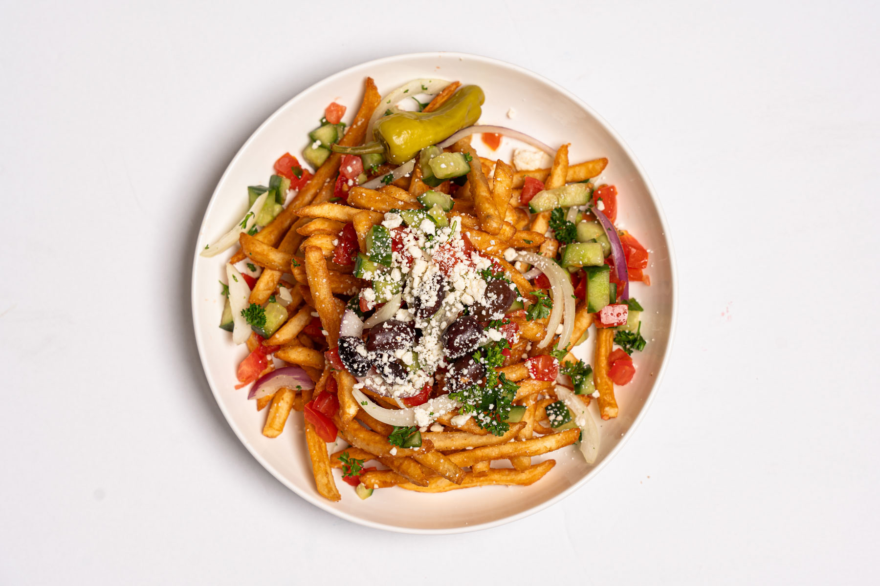 Fries get a full upgrade at Parkway: crispy spuds covered with tangy feta, briny olives, fresh tomato, and sharp red onion. The flavors punch through every bite. This side’s all about richness and bold crunch—a Mediterranean-style snack that’s salty, savory, and totally addictive.