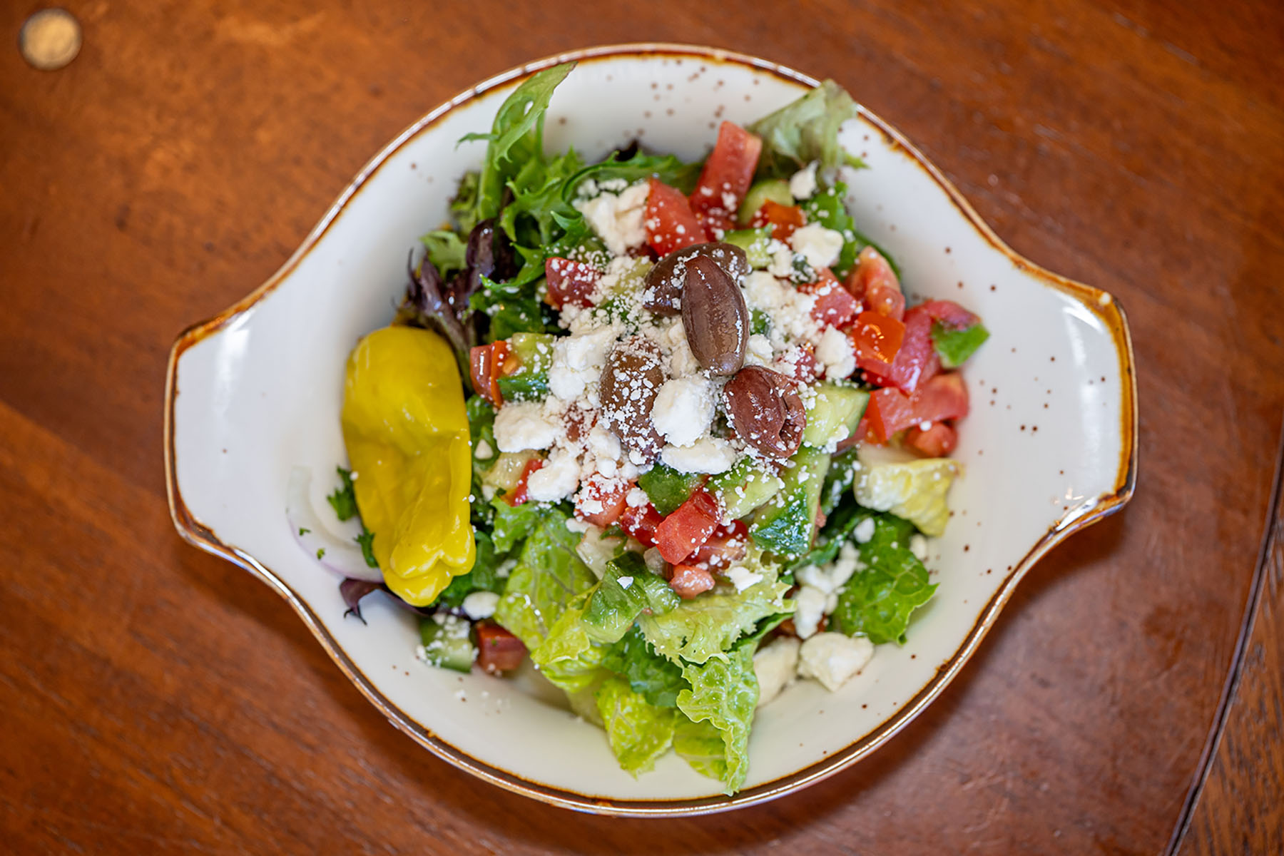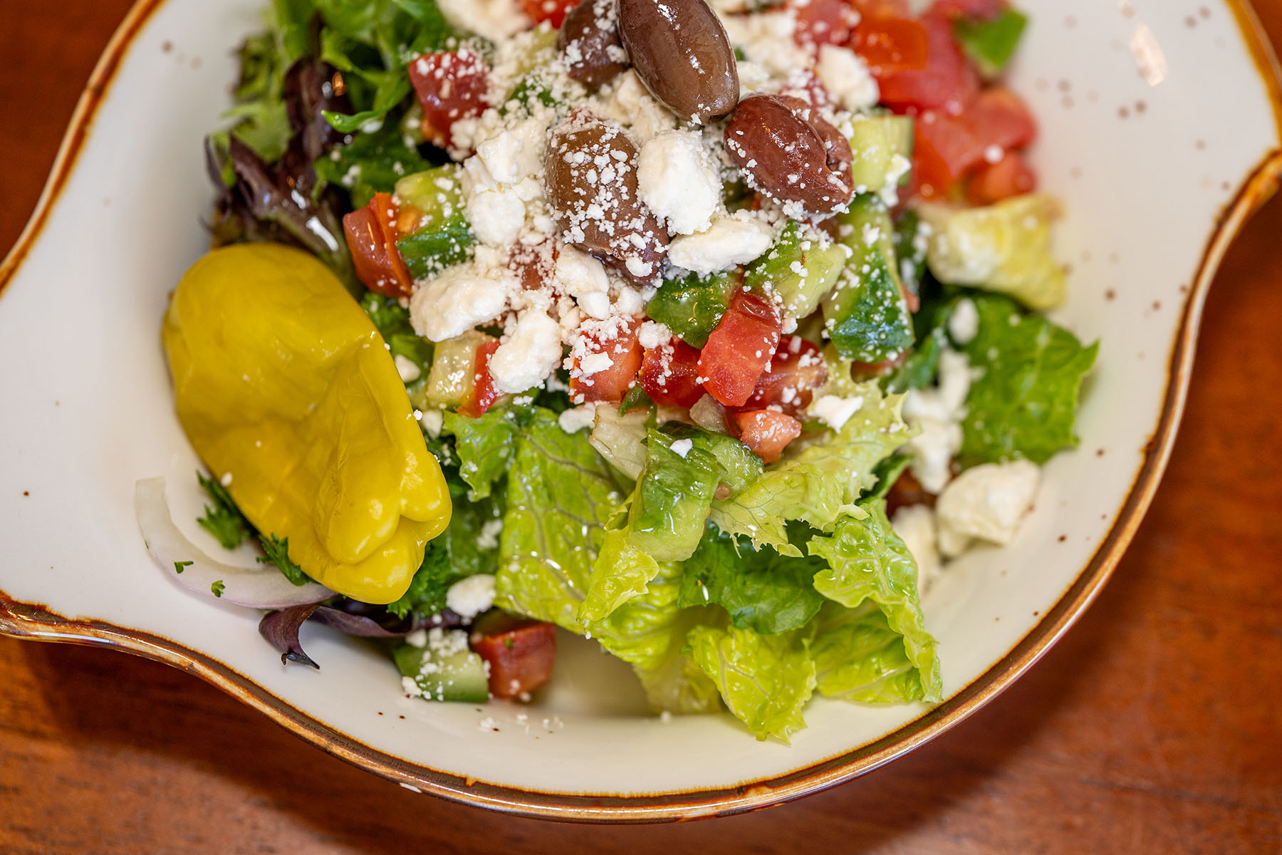 A real Greek salad means salty feta, plump olives, crunchy cucumber, and juicy tomatoes, layered on top of crisp greens. Red onion and pepperoncini add attitude and tang. Dressed with zesty vinaigrette, this salad brings bright Mediterranean flavors, balanced textures, and big nutrition. It’s filling, bold, and colorful—a complete, classic side or even a light meal.