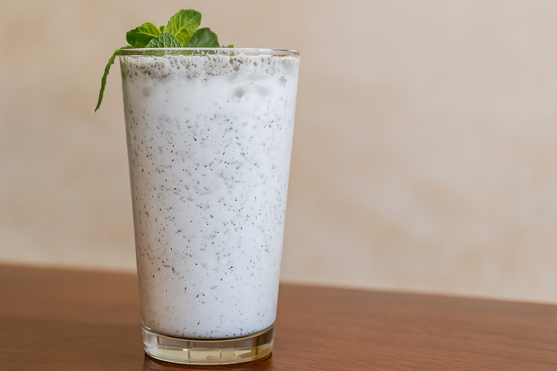 This is traditional Persian doogh—real yogurt drink, ice-cold, salty, and tangy with a hit of dried mint. Zero sugar. No artificial flavors. No “fusion” nonsense. If you grew up with doogh, you know what to expect: it’s supposed to be savory and a little sour, not some weird bubbly stuff or a sweet lassi.